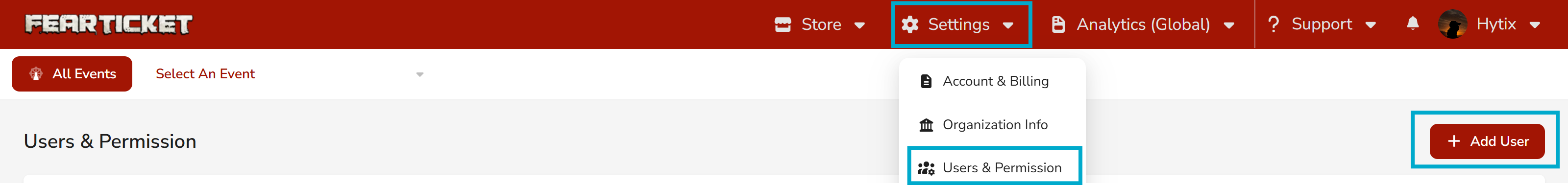 You can create additional system users into your ticketing account to manage, Check-in, Box-Office, Marketing etc. As shown below image click on the "Settings" menu then "Users & Permission"