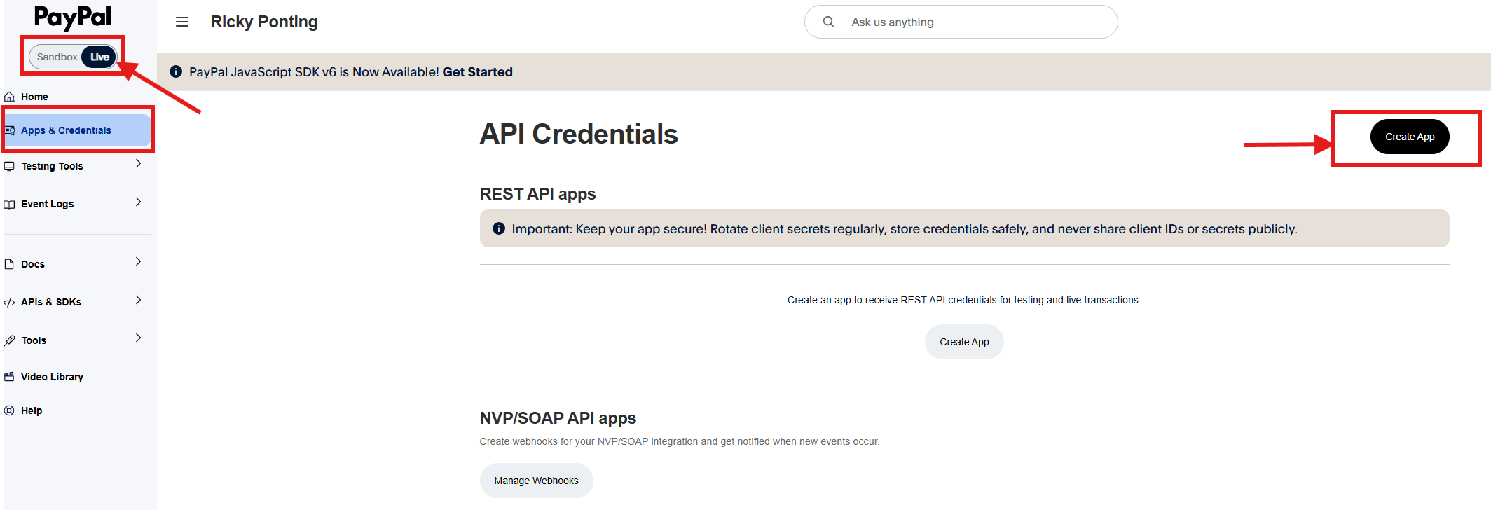 Now, click on "Apps & Credentials" from the left menu and toggle the switch to "Live" following the below image.