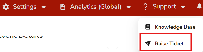 Click on the “Support” menu and select “Raise Ticket” as shown in the below image