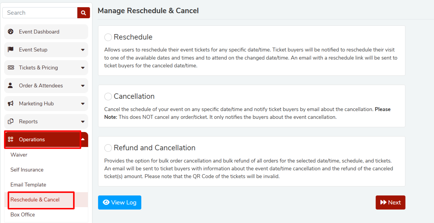 ( Permanent cancellation to deal with refund process manually on request if applicable as ticket buyers do not have the flexibility to select new date and time)
