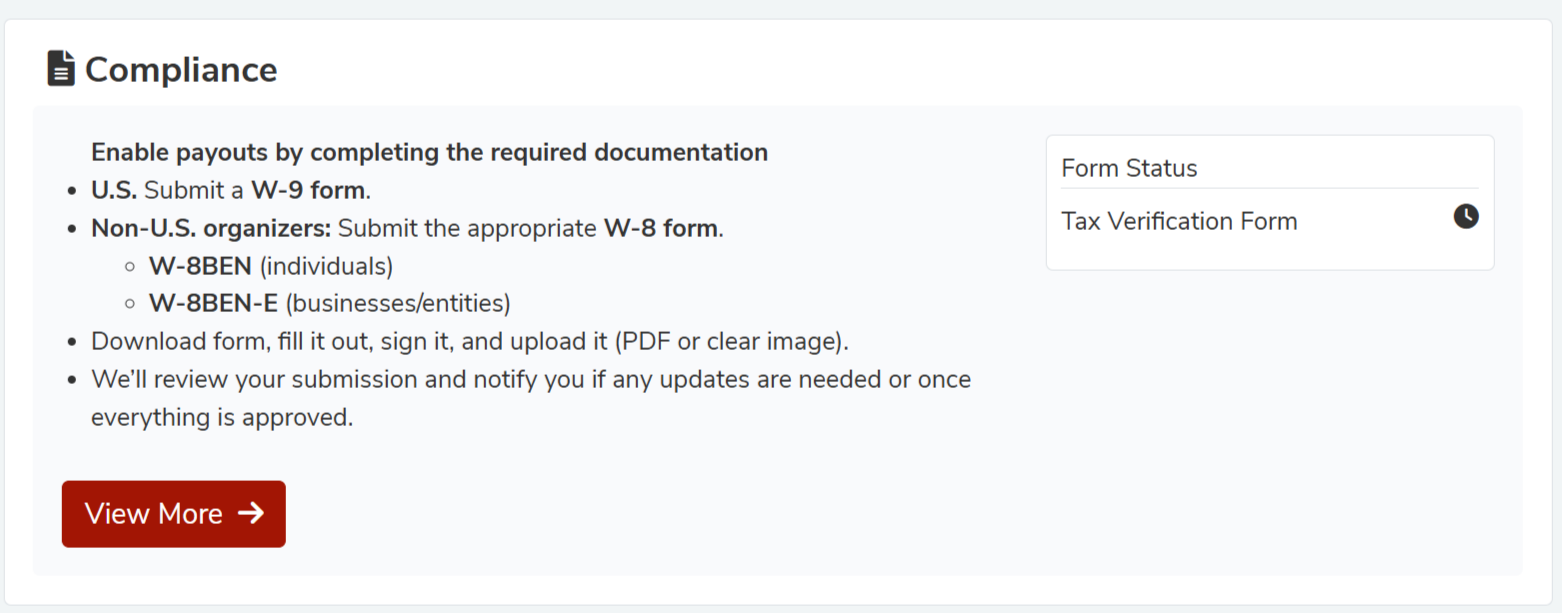 Without a completed tax form, payouts will be blocked or delayed.