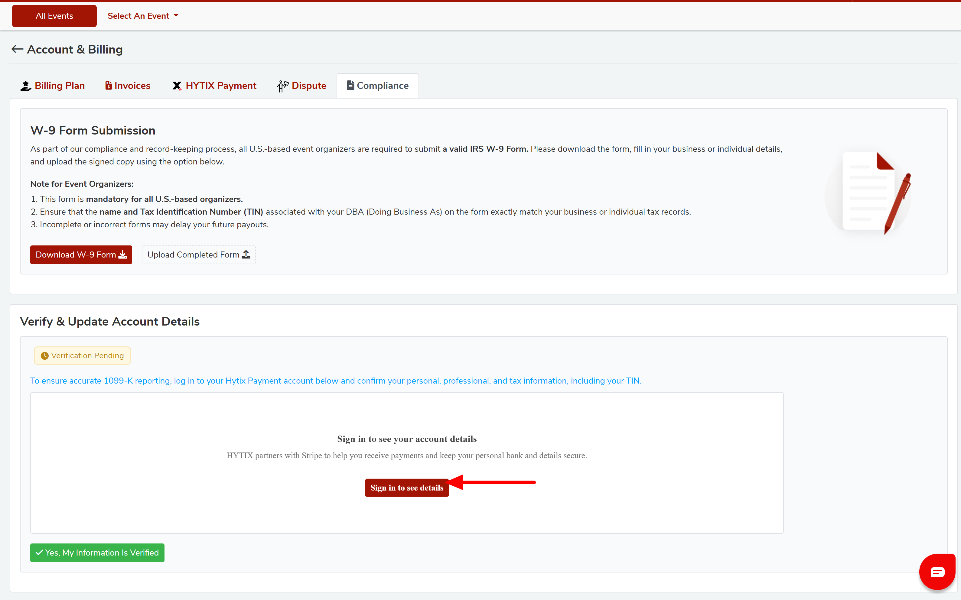 For the 1099-K reporting purposes, it's important to confirm your personal, professional, and tax information, including your TIN by navigating to Compliance> Verify & Update Account Details