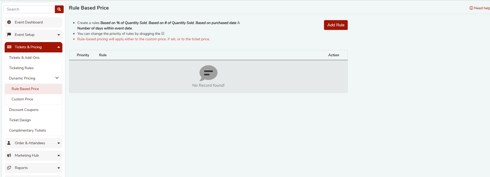 - Go to Event Setup > Tickets & Pricing > Rule Based Price.