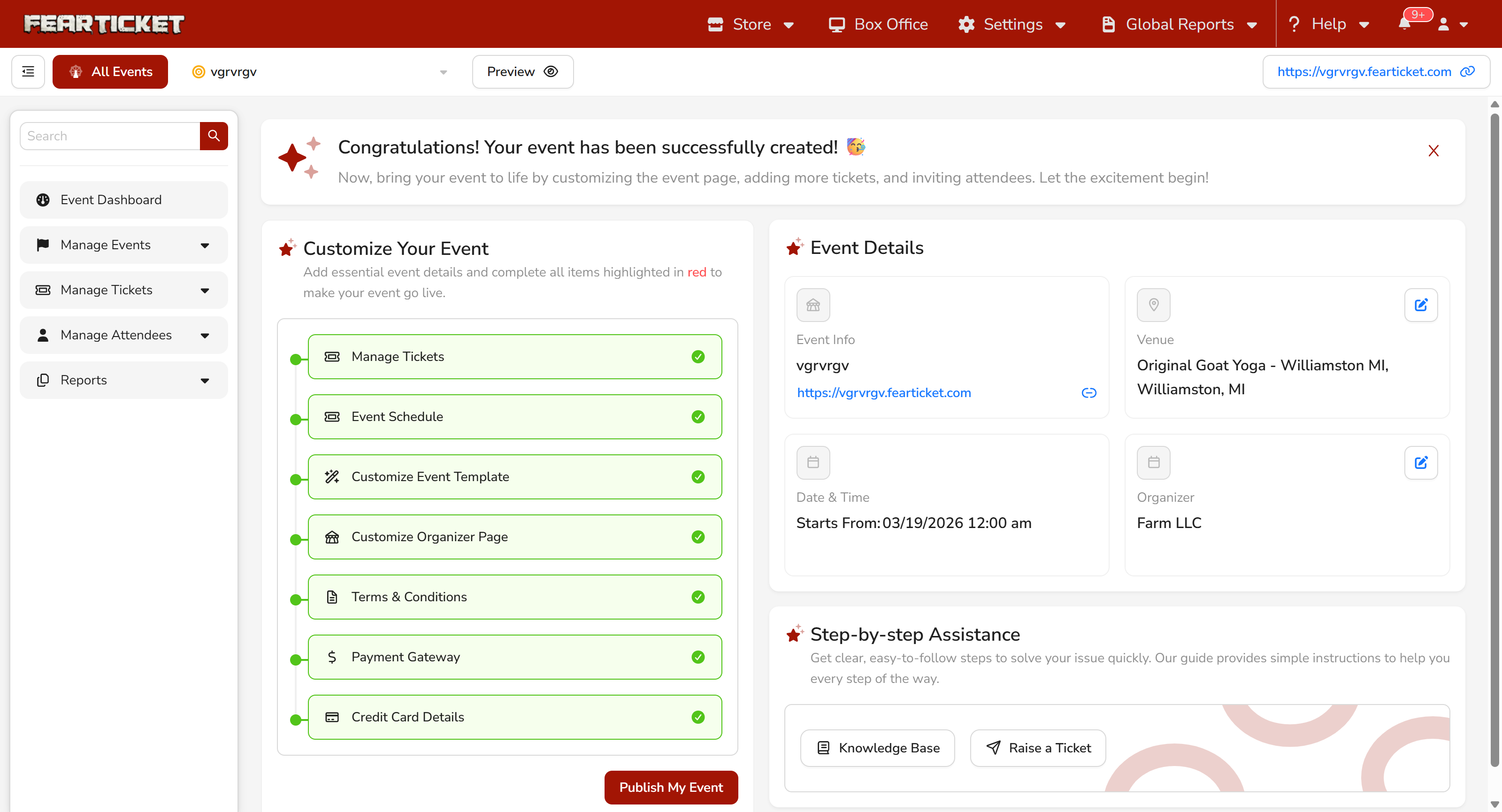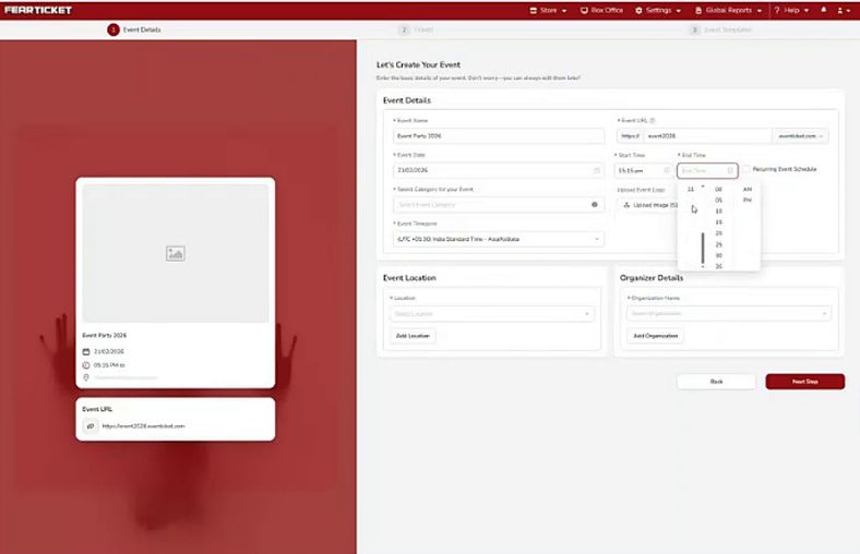 https://[slug].eventticket.com. You can customize the slug if needed.Event Date & Time